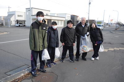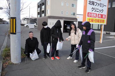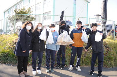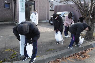 気温がぐっと下がりました。積雪前に、1年次生によるゴミ拾いです。1組が担当しました。